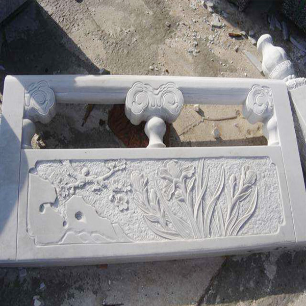 采用大理石或花岗岩制作,上有石扶手,中间是石栏杆,下方的底板根据需要,可要可不要,如果是楼梯的开头一端还有一根较大将军柱。拼接处主要是用铁条和专用云石胶连接。由于其由天然石材经物理加工制作,所以抗老化能力较强,外观较厚重,具有现代气息。室外多用花岗岩材质为主,室内则多用大理石材质。
